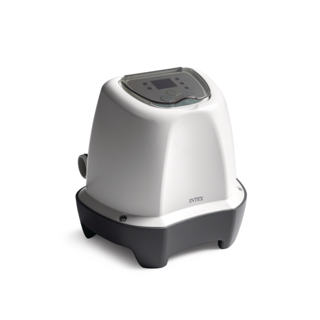 Διατηρήστε το νερό της Intex πισίνας σας απολυμασμένο και καθαρό με το σύστημα αλμυρού νερού Krystal Clear®, που παράγει χλώριο (ποσότητα: 2 g/h) και εξαλείφει τα φύκια και τα βακτήρια. Διαθέτει πίνακα ελέγχου, λειτουργία αυτοκαθαρισμού και κύκλους λειτουργίας για 10 ώρες. Απαιτεί ροή αντλίας μεταξύ 1136-3785 L/h. Μέγιστο μέγεθος πισίνας: 8237 λίτρα (μικρές ορθογώνιες πισίνες ή στρογγυλές πισίνες έως 366 cm).