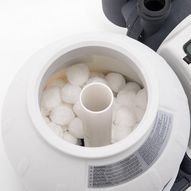 Δεν συνιστούμε backwash. Για να καθαρίσετε τις μπάλες ινών, συνιστούμε να τις πλένετε κάθε δύο εβδομάδες είτε με το χέρι είτε με πλυντήριο ρούχων: Αφαιρέστε τις μπάλες ινών από τη δεξαμενή και τοποθετήστε τις σε μια σακούλα πλέγματος πλυντηρίου. Χρησιμοποιήστε λάστιχο κήπου για να ξεπλύνετε πρώτα τα μεγάλα σωματίδια και, στη συνέχεια, τοποθετήστε το στο πλυντήριο ρούχων σε τυπική λειτουργία. Χρησιμοποιείτε μόνο γλυκό νερό για να πλύνετε τις μπάλες ινών, ΜΗΝ προσθέτετε απορρυπαντικό, χλωρίνη ή χημικά. Εάν μετά το πλύσιμο των σφαιρών ινών, εξακολουθούν να φαίνονται βρώμικες, είναι καιρός να τις αντικαταστήσετε με καινούργιες.