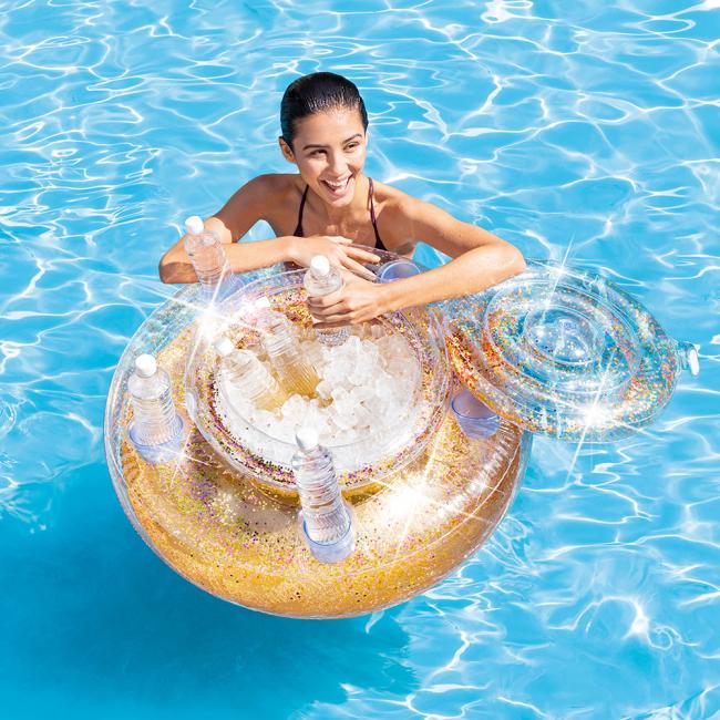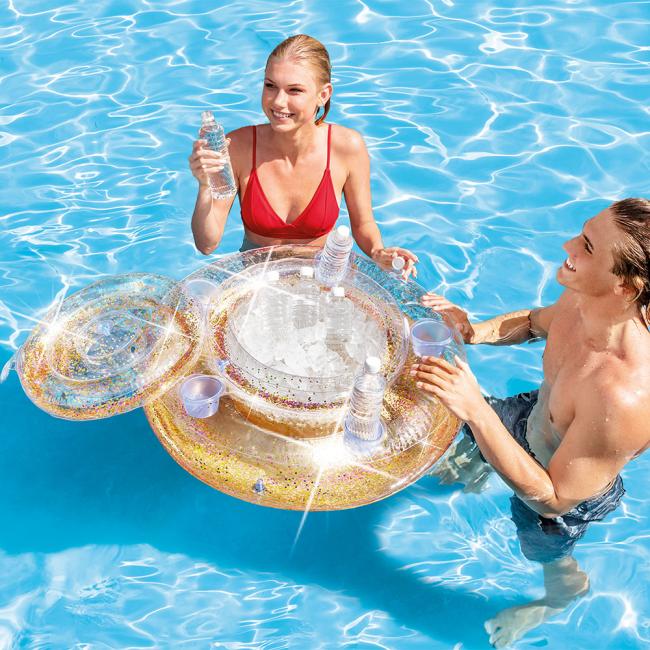 Ψυγείο Glitter Mega Chill 74εκ X 33εκ, ψυγείο που επιπλέει και βαστάει δροσερά τα ποτά σου, με 5 θέσεις εξωτερικές για ποτά, με χρυσό & ρόζ γκλίτερ, 030mm vinyl, επικσευαστικό κιτ/αυτοκόλλητο, (1.46kg)