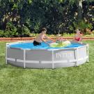 The round Intex Prism Frame Round pools offer excellent value for money. The pool is easy to assemble. The galvanized stainless steel frame ensures greater stability and durability. The three-layer liner provides extra protection against scratches and other everyday wear and tear. This above-ground pool fits perfectly in any yard, and everyone in the family will love its simple design.