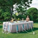The Prism Frame™ Rectangular pool is designed to fit any backyard. The pools are built to provide extra swimming space and will hold more pool water than the traditional Round Frame pools, allowing swimmers to appreciate the maximized swimming area! With a sophisticated look, Intex Prism Frame™ pools will provide families with endless fun with a taste of luxury at an affordable price.