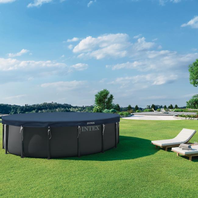Keep your above-ground pool in excellent condition all year round with the Intex All-Season Deluxe Cover. The cover is made from three-layer, UV-resistant polyethylene. It protects your pool from leaves and debris, keeping it clean and ready for use.