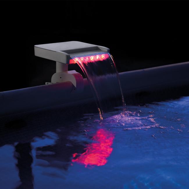 Add a touch of tranquility to your above ground pool with this easy-to-install multi-color LED waterfall. The sheer and gentle cascade of water will enhance your swimming experience, producing refreshing negative ions at the water surface and bringing you serenity and relaxation while you swim.