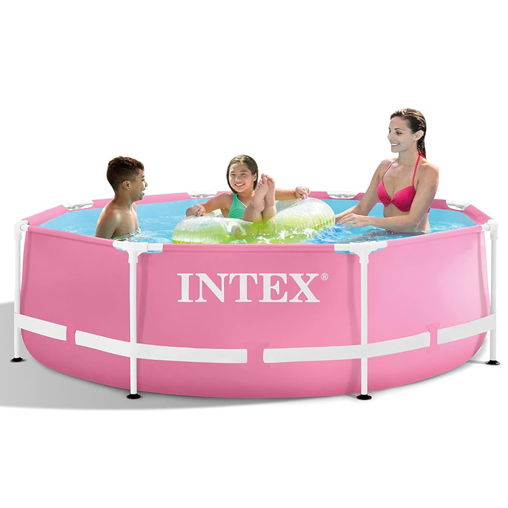 Intex Round Metal Frame Pools are an extra strong and sturdy alternative to the Easy Set pools; they range from starter pools to pools large enough for the whole family. Intex Round Metal Frame Pools offer more swimming area and are constructed of high-grade steel that is powder-coated for rust resistance.